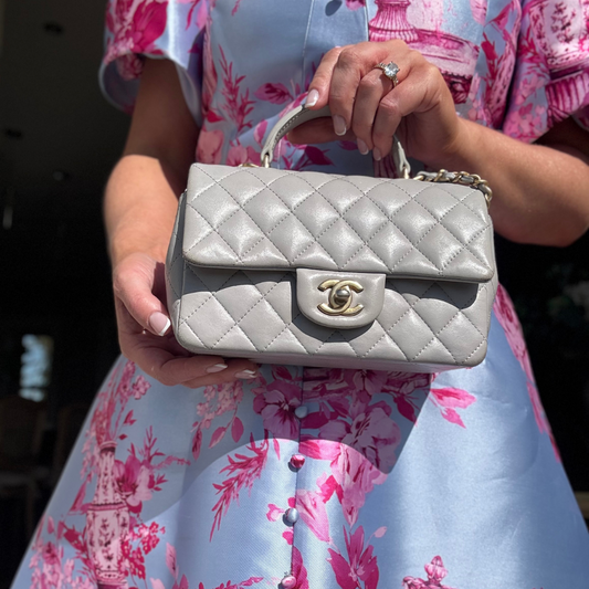 Chanel Grey Lambskin Mini Rectangle with Top Handle