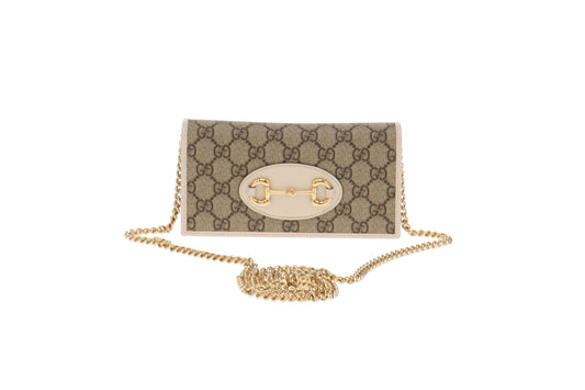 Gucci GG Supreme and White Leather Horsebit 1955 Chain Wallet