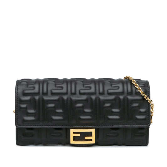 Fendi Black Zucca Embossed Leather Wallet On Chain