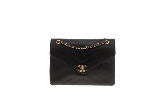 Chanel Black Chevron Leather Coco Envelope Flap Bag
