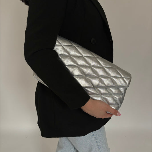 Saint Laurent Silver Sade Puffer Large Envelope Clutch Bag