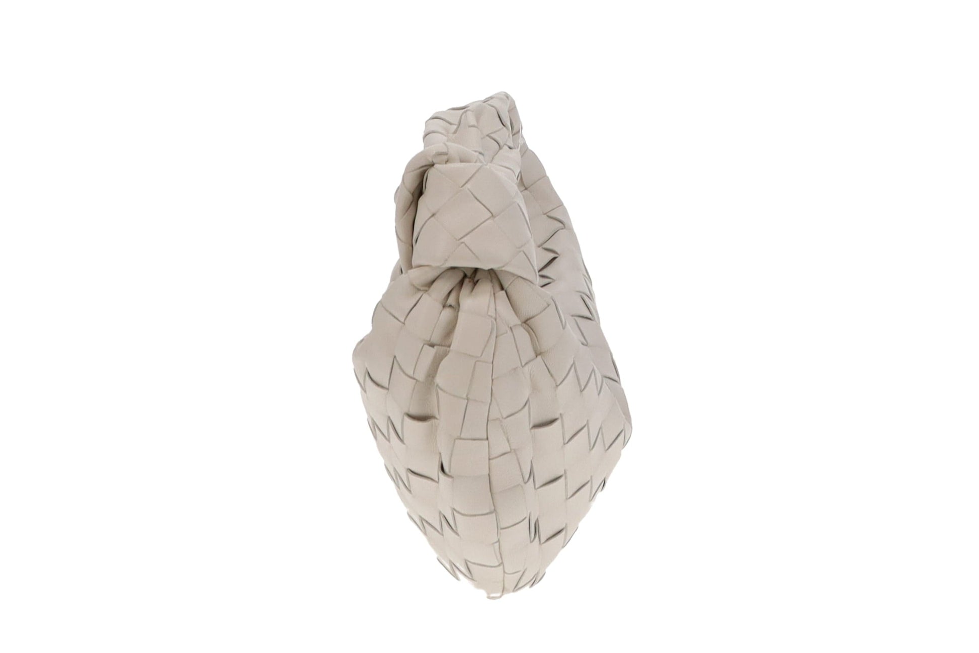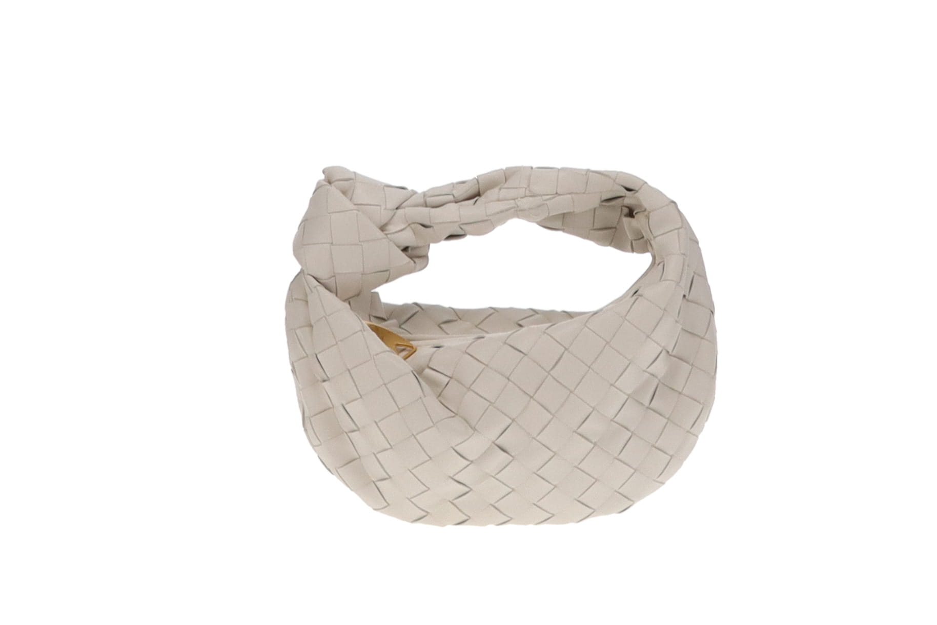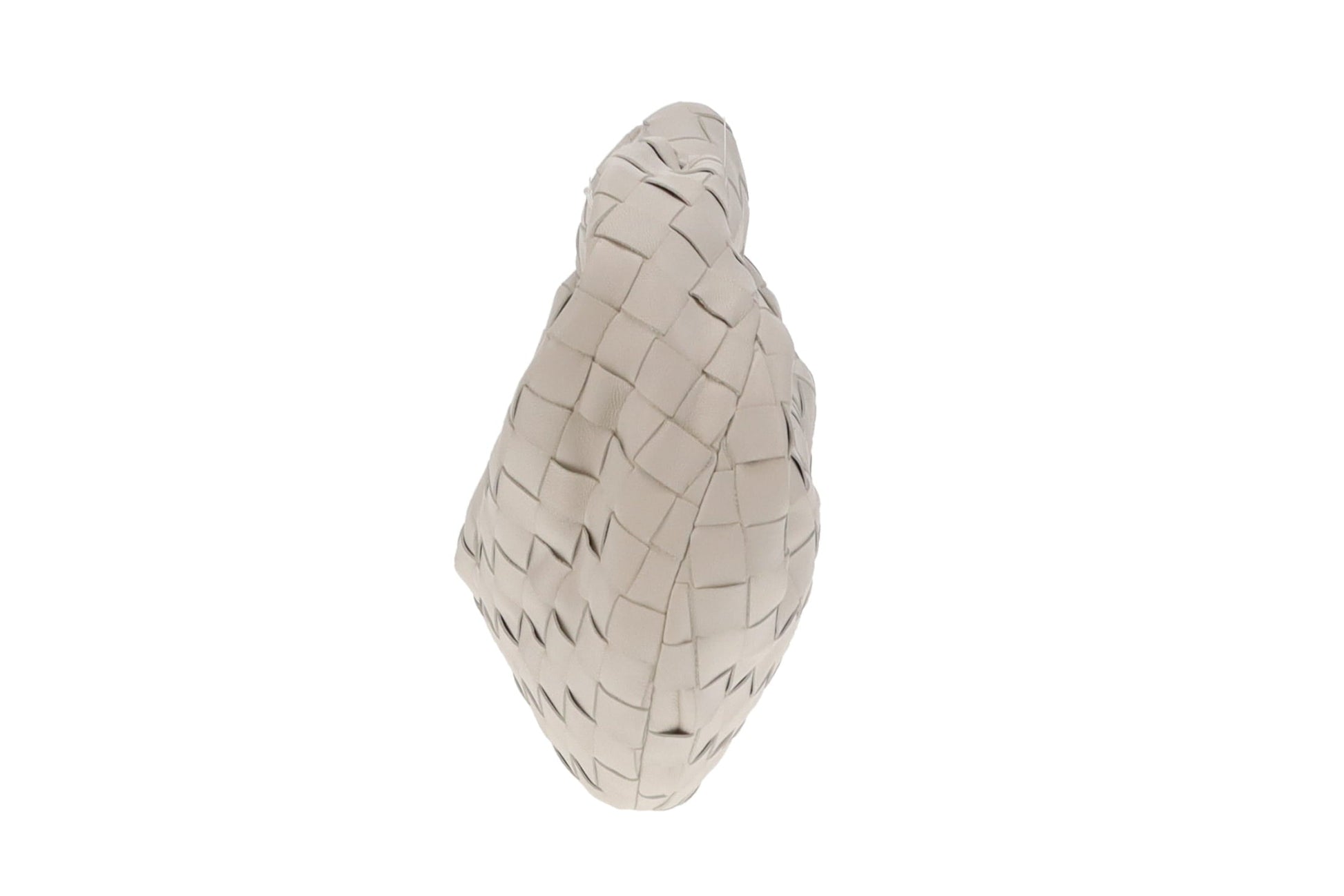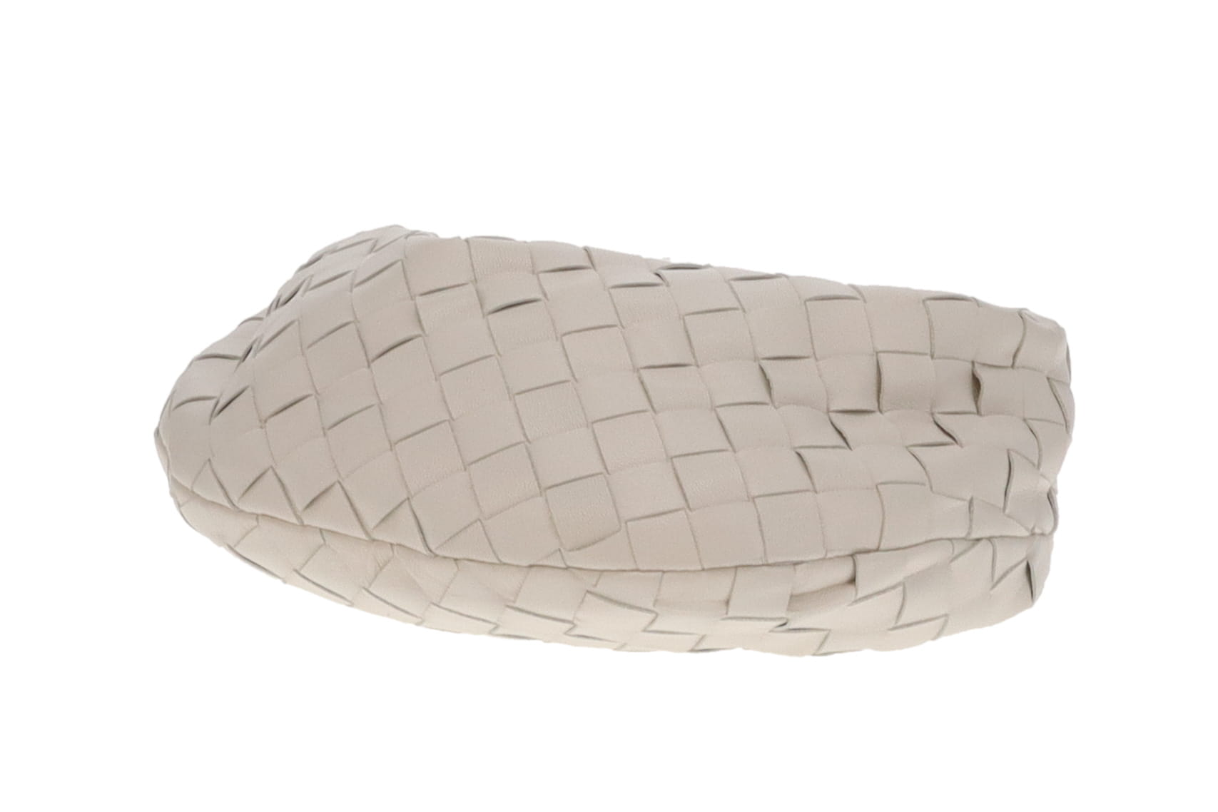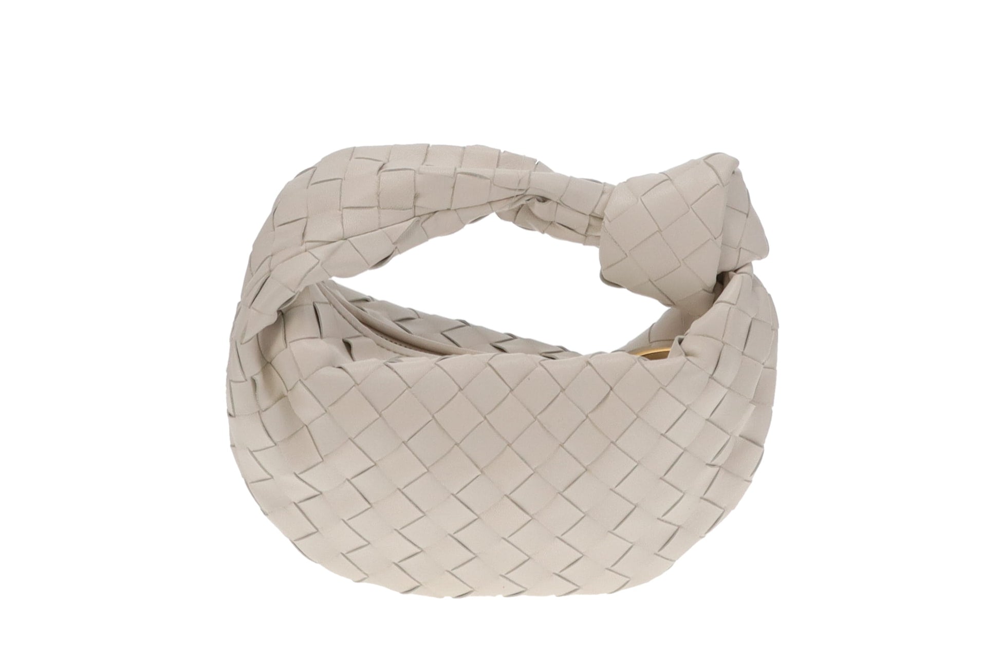 Crafted in Italy from white leather, this Bottega Veneta mini Jodie bag features the iconic Intrecciato weaving technique. Elegant yet versatile, it adds a touch of sophistication to any outfit. Perfect for carrying essentials, it is the perfect accessory for any occasion.