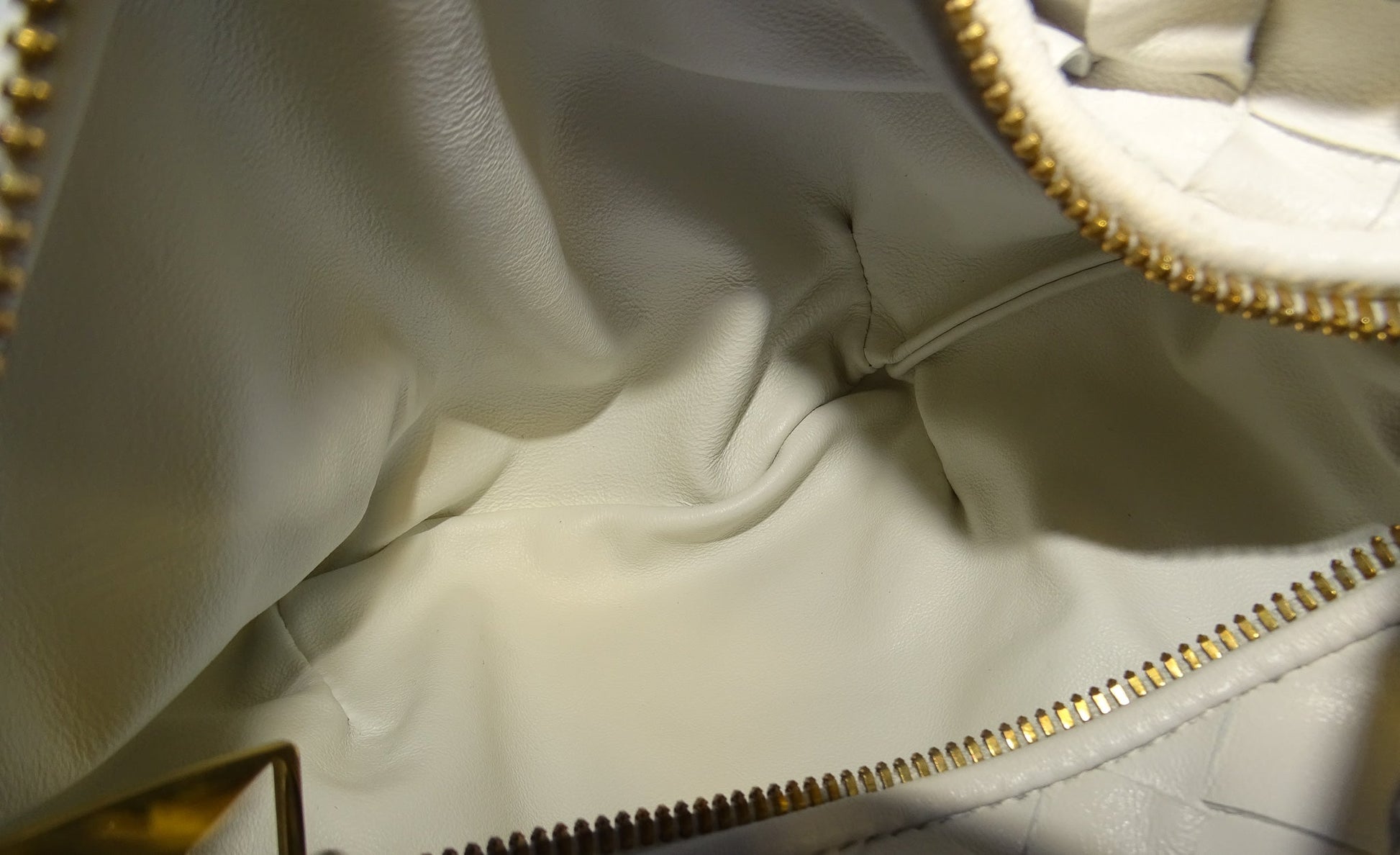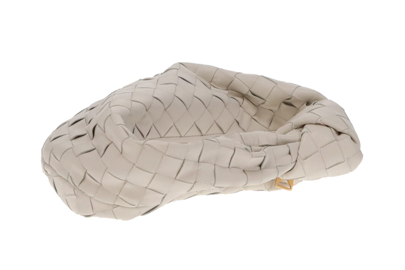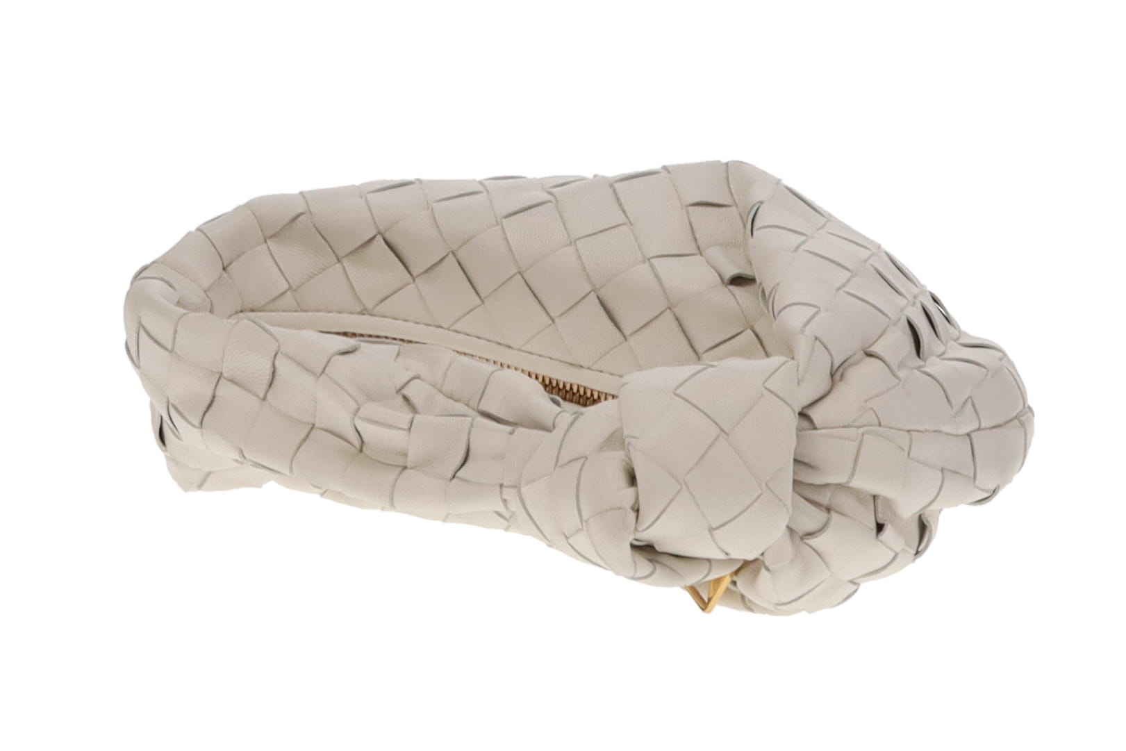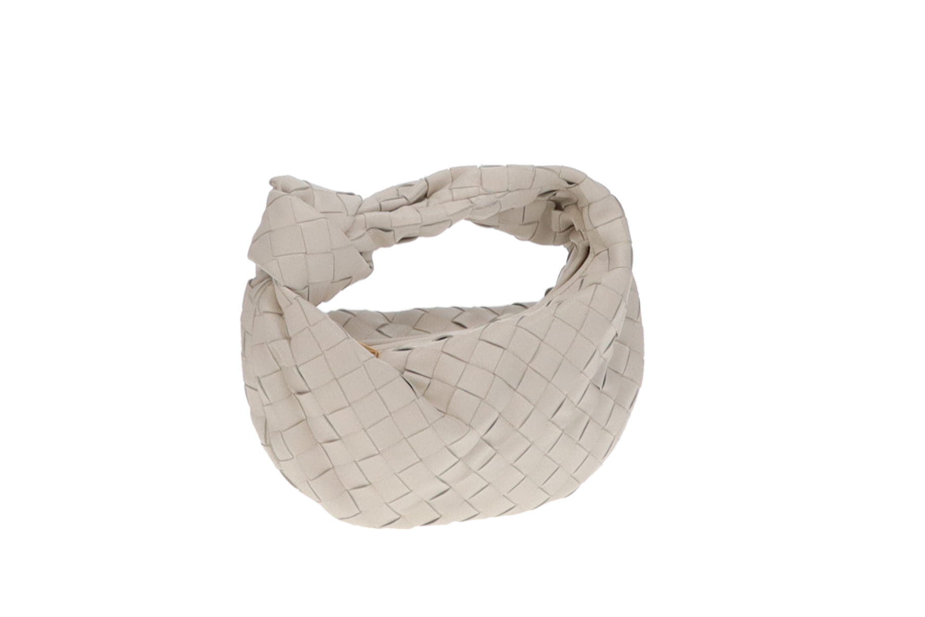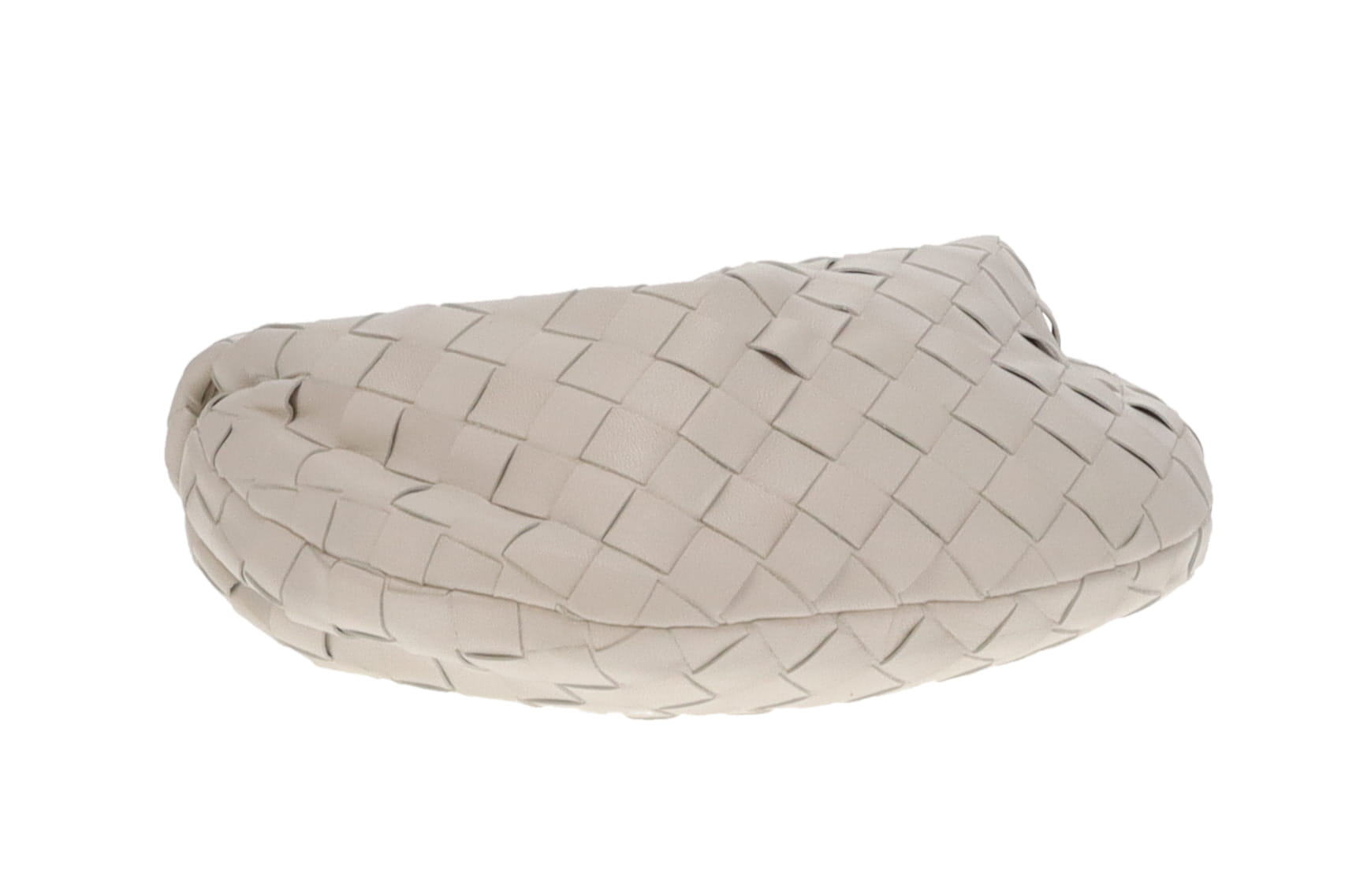Crafted in Italy from white leather, this Bottega Veneta mini Jodie bag features the iconic Intrecciato weaving technique. Elegant yet versatile, it adds a touch of sophistication to any outfit. Perfect for carrying essentials, it is the perfect accessory for any occasion.